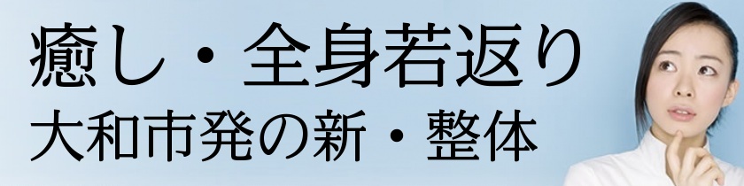 腰痛/肩こり/関節痛改善の神奈川人気整体から、大和市発!癒し・全身若返りのエグチ整体へリニューアル。身体は、20代でピークを迎え30代から衰えはじめます。2003年開業より、30代・40代でも腰痛/肩こり/関節痛を発症し、整体を受ける人が後を絶たないことから、「心と体の健康に整体」と思い、2019年にリニューアル。