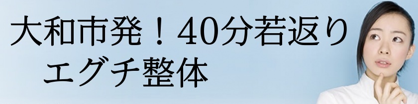 2019年、ついに新整体を開発し、大和市発!40分若返りエグチ整体へ。幸せは健康からと思う方に、「体がすごく軽くなる!」、「体も心も癒される!」と人気です。